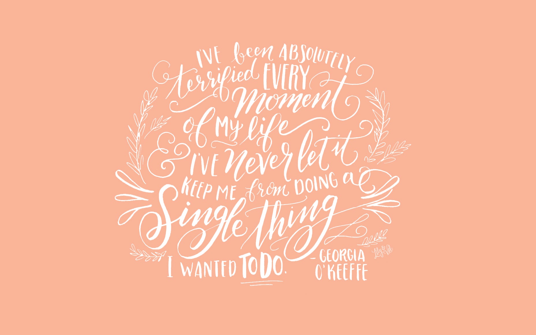 This past August, I had the pleasure of visiting the Georgia O’Keeffe museum in Santa Fe. Ever since, I wanted to hand letter this amazing quote. It seems fitting to display her inspirational words as we enter a new year and tackle the fears that may be holding us back from accomplishing what we hope in 2016. I hope it is the perfect refresh for your screens! Enjoy!